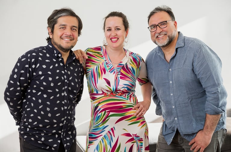 El guitarrista chileno Rodrigo Santa María afincado en Berlín desde décadas, ha desarrollado un estilo musical muy personal, arraigado en ritmos latinoamericanos como la chacarera, el landó o la zamba, pero al mismo tiempo abierto a influencias urbanas y contemporáneas. Sus composiciones constituyen el corazón de este trío: sutiles, complejas y emotivas.